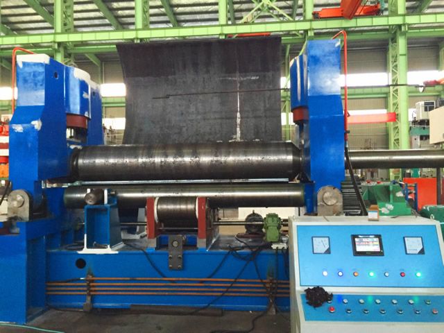 ![]() 上輥萬能式卷板機(jī)用于在常溫下彎卷一定厚度的金屬板成筒狀、弧形或有一定錐度的零件。其工作原理是旋轉(zhuǎn)式彎曲變形。因上輥可上下移動,也可水平移動,所以不需另加壓力機(jī)等附加設(shè)備,可一次上料,不需調(diào)頭就可完成板材兩端部的預(yù)彎以及成型彎曲功能,以及用于成型工件的矯正。借助輔助設(shè)備,可使板料端部對正,且剩余直邊較少。